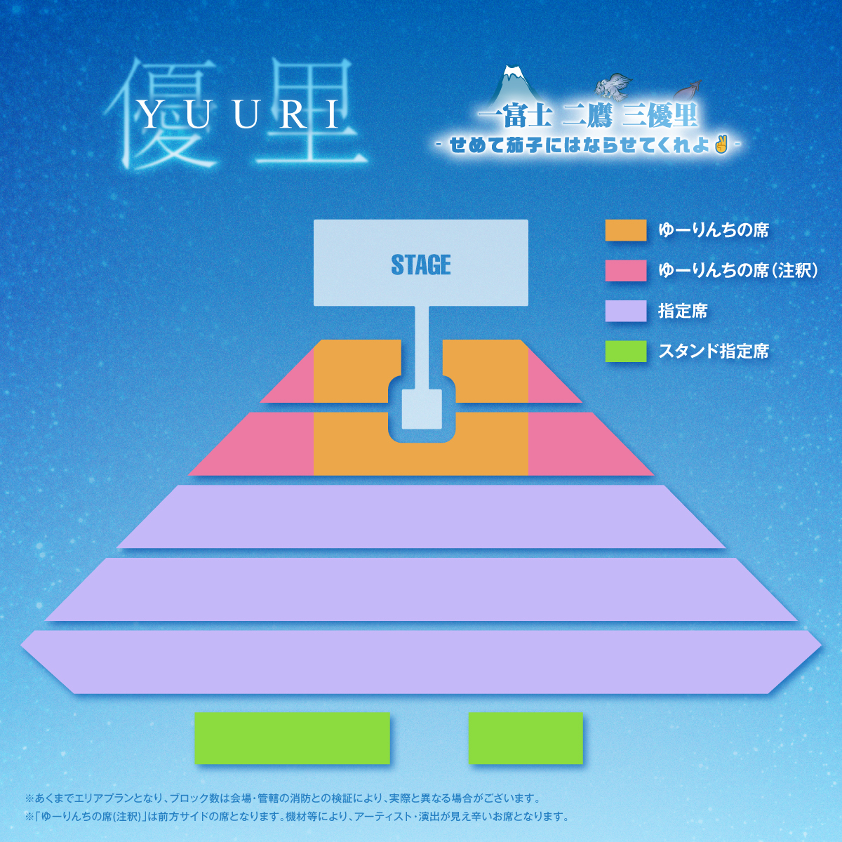 ・ゆーりんちの席(注釈):前方サイドの席となります。機材等により、アーティスト・演出が見えづらいお席となります。